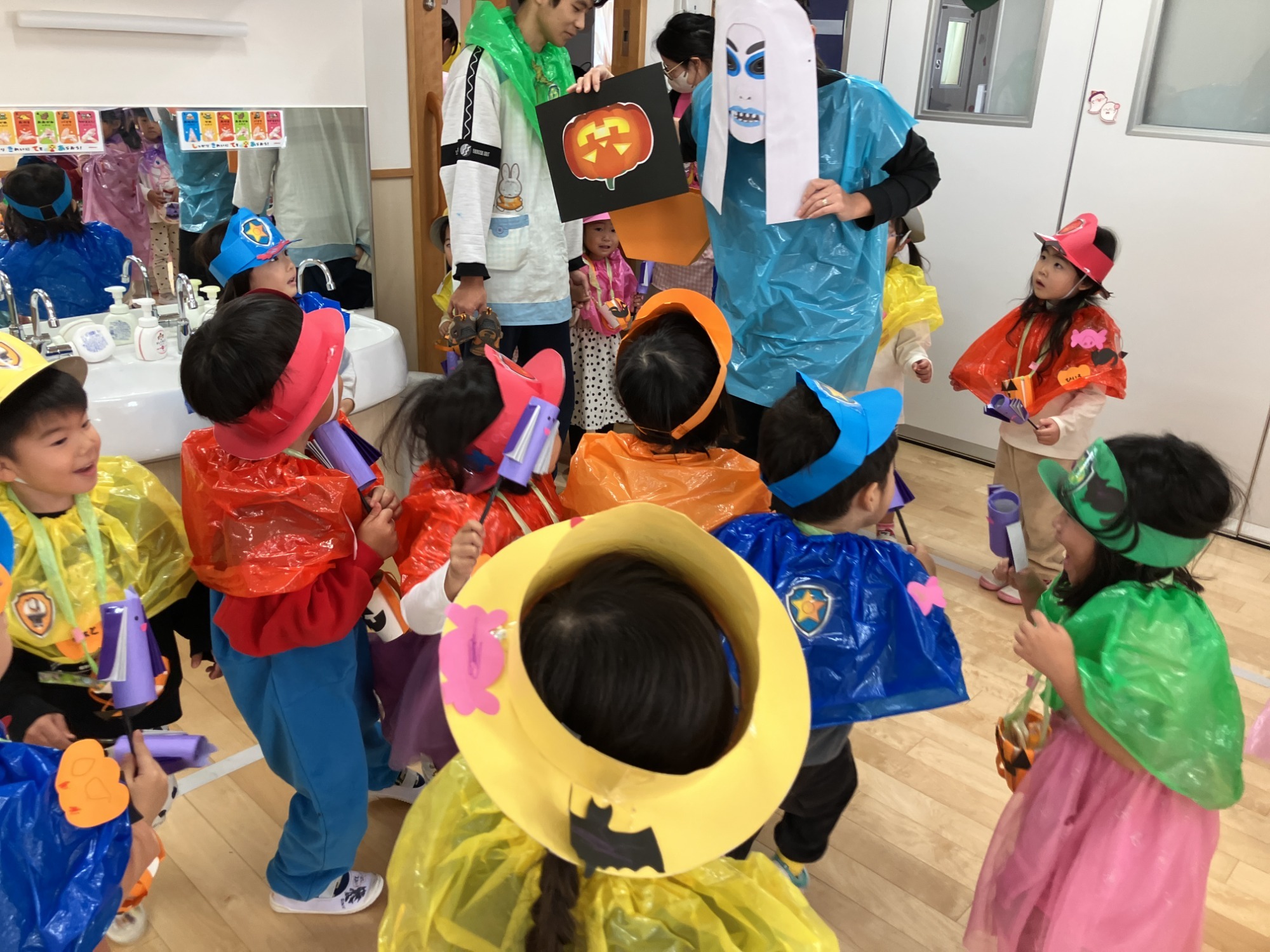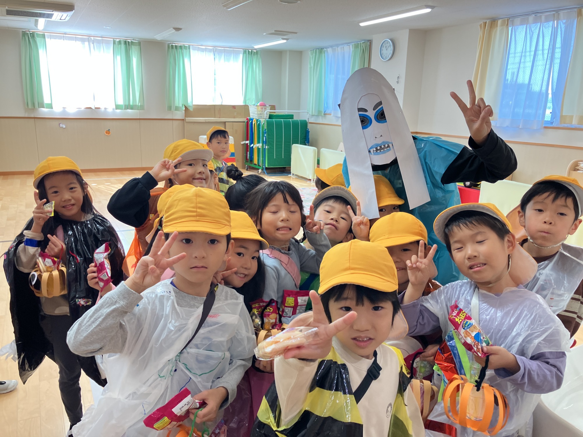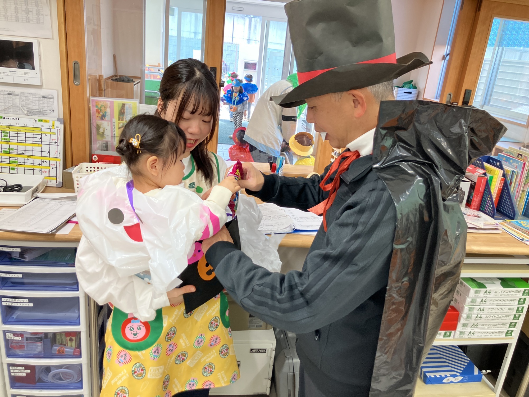 そしてハロウィンの合言葉〝トリックオアトリート!!お菓子くれなちゃいたずらするぞ~!!〟といって、おばけに変身した先生たちからお菓子をもらうことができた子どもたちでした!!